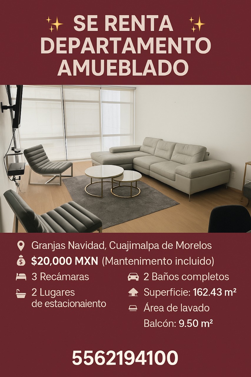 ✨ SE RENTA DEPARTAMENTO AMUEBLADO ✨