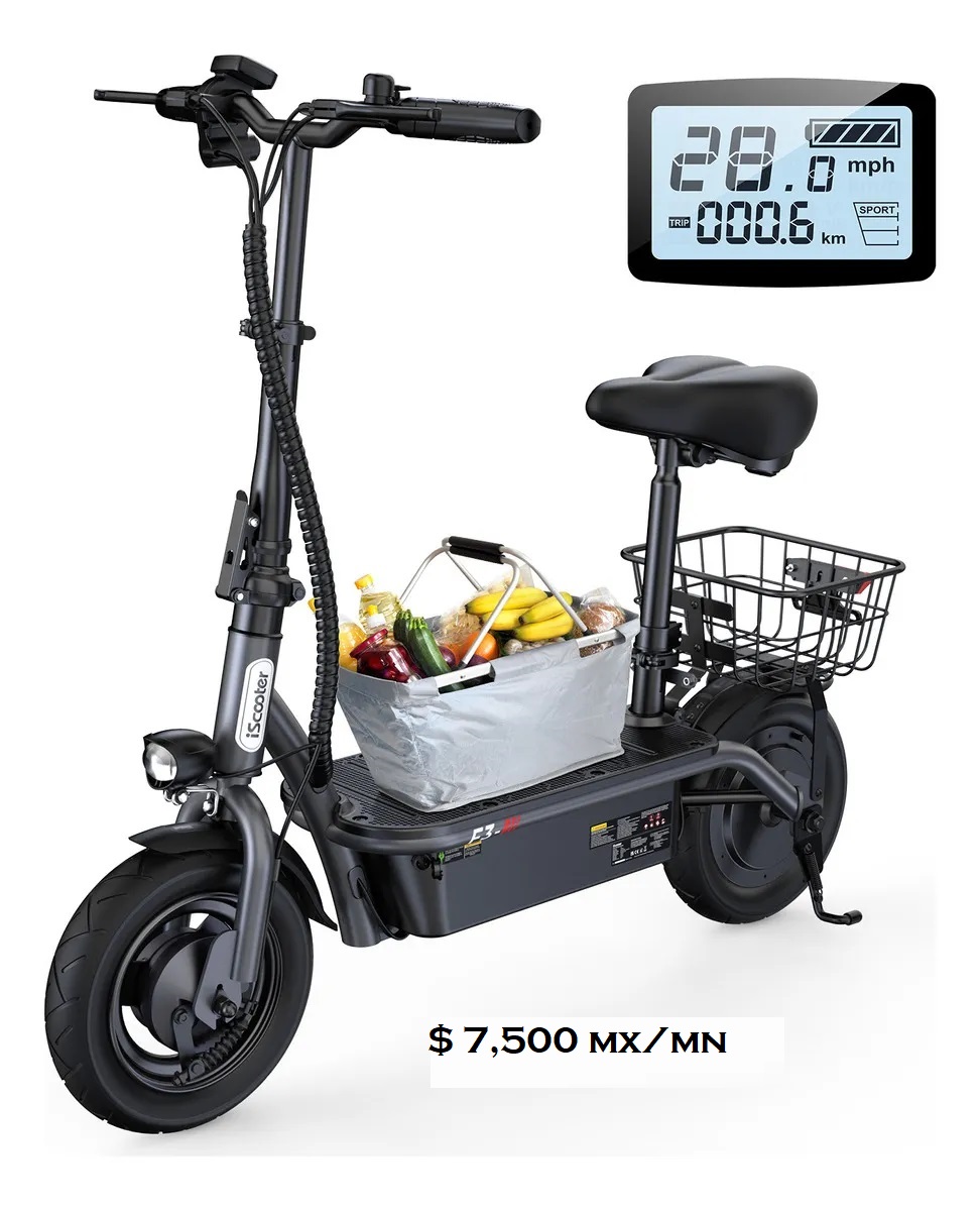 Cuenta con una pantalla clara para ver la velocidad, el kilometraje y el nivel de batería. La cesta trasera es útil para llevar tus compras. La función de candado con llave es sencilla y segura. El chasis de acero al carbono es resistente y soporta hasta 120 kg.