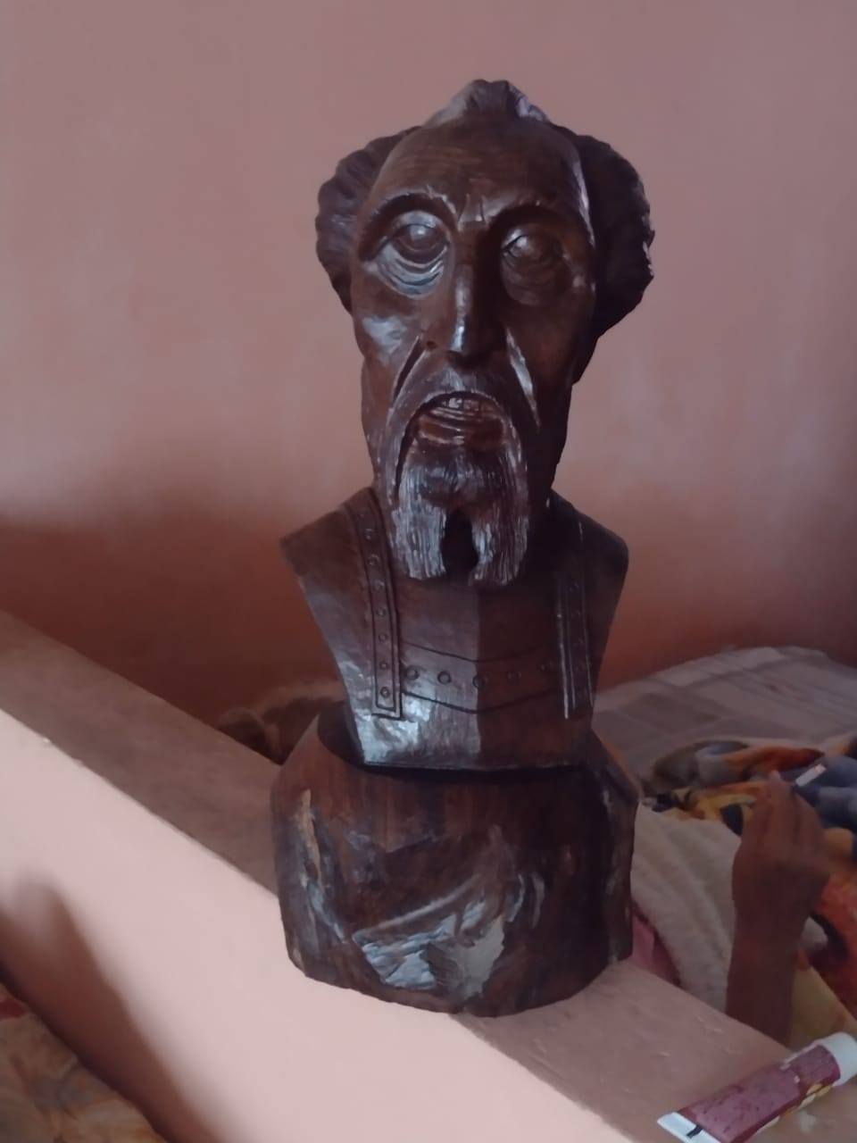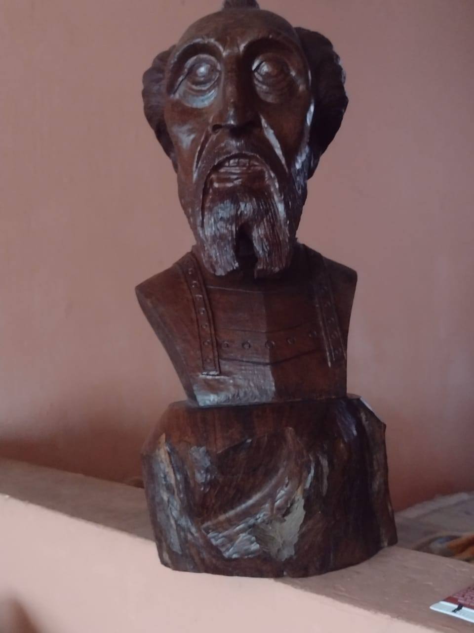 Busto de Don Quijote hecho a mano en madera de palo fierro, mide 40 cms de altura y pesa más de 12 kilogramos, perteneció a un ex presidente de México.