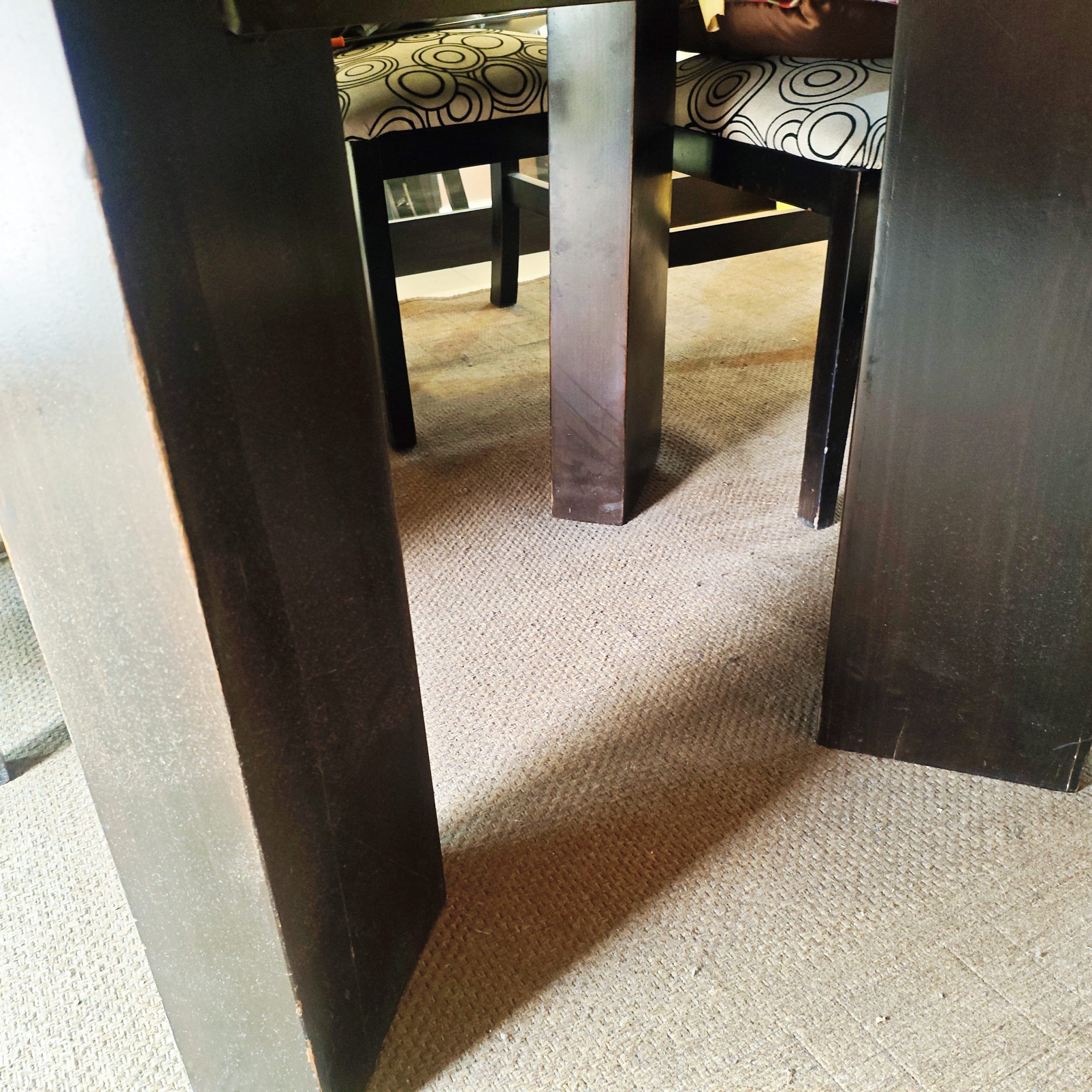 Sillas (8): de madera, recién retapizadas con tela moderna en tonos neutros.
