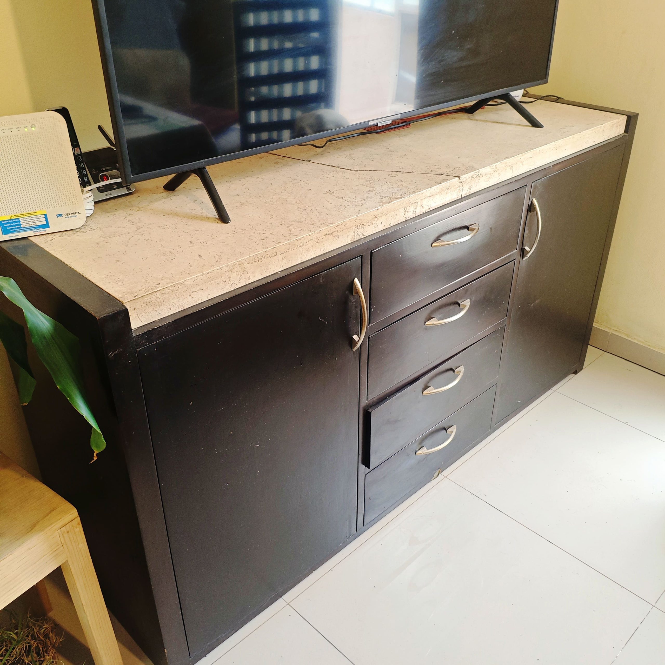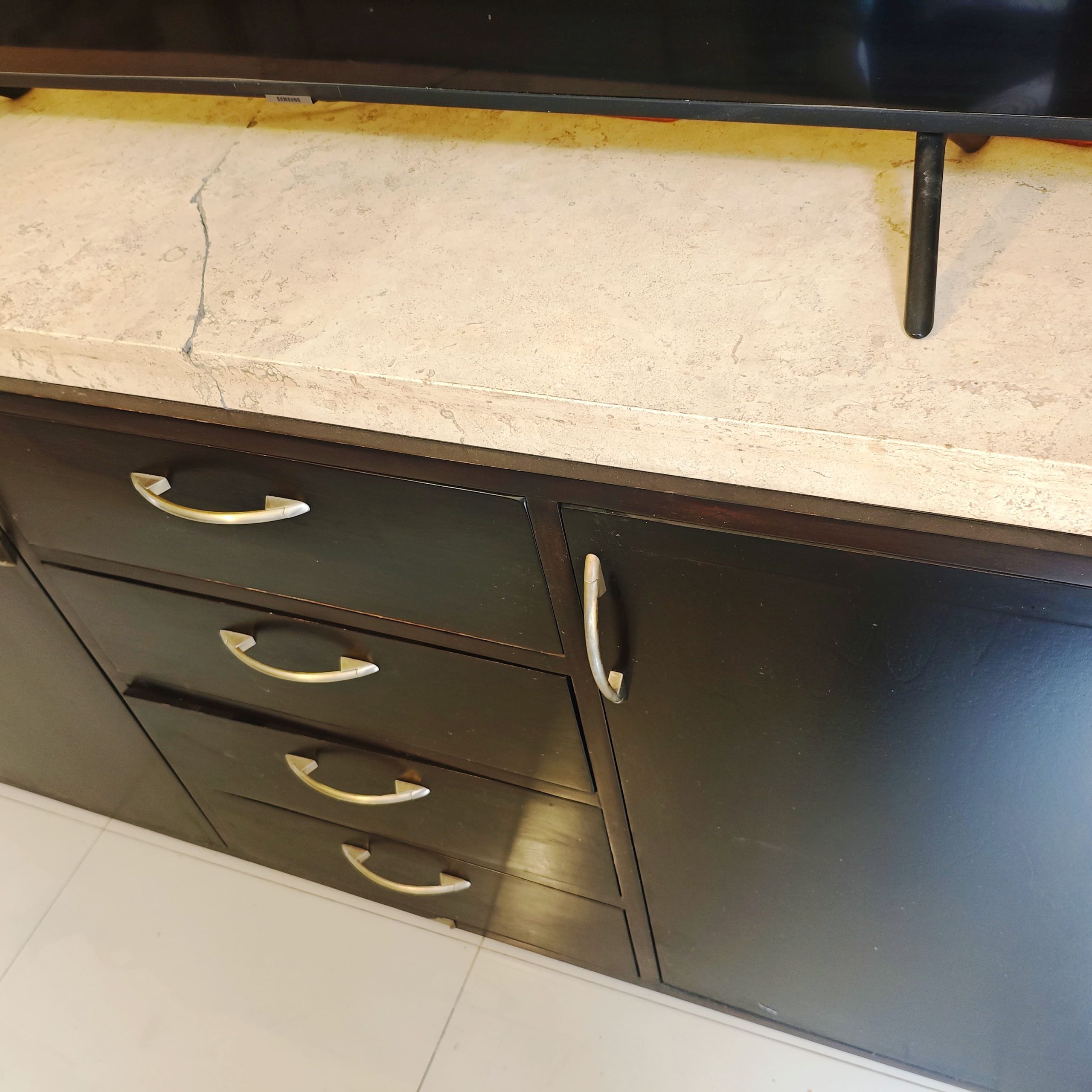 Detalle: el mármol del mueble de vajilla está roto, pero puede repararse.