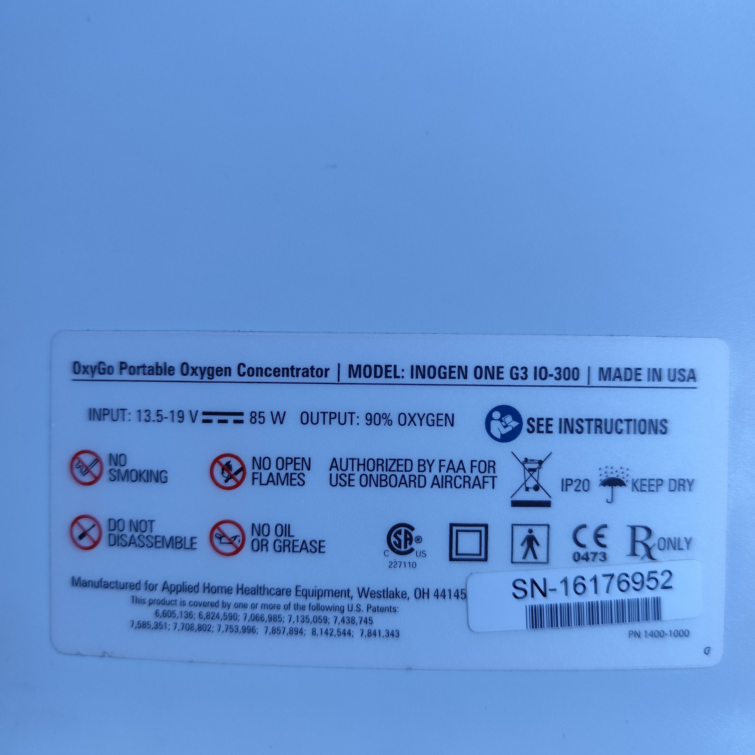 Concentrador de oxigeno portátil inogen g3 con dos pilas