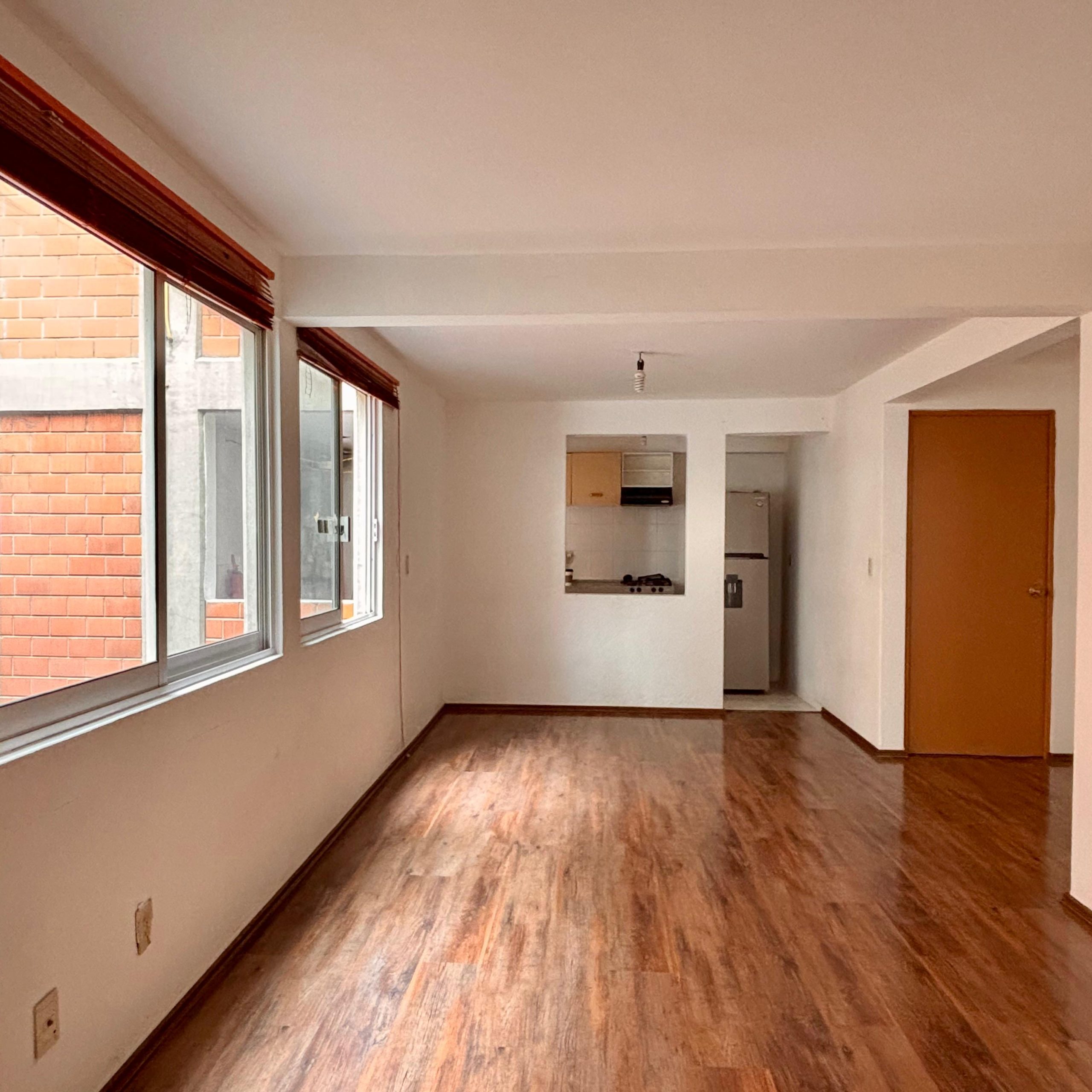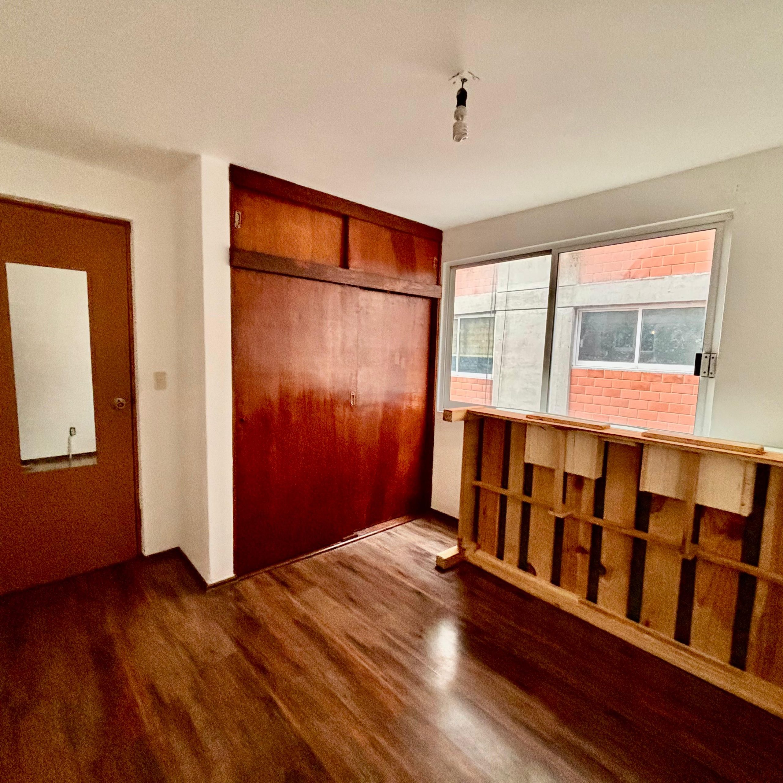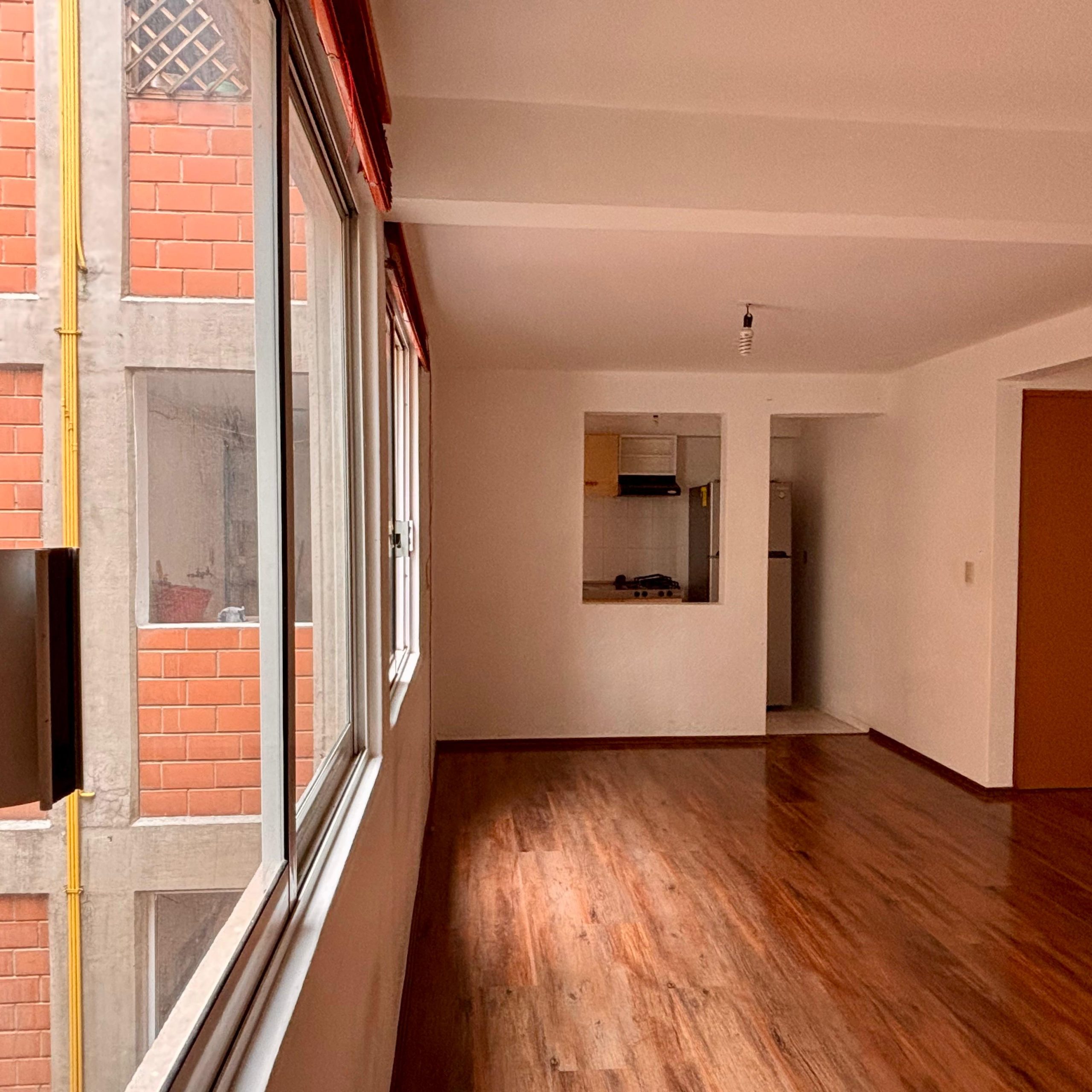 Departamento a unas cuadras de la plancha del zócalo y enfrente de una estación del metro bus, edificio monitorias con cámaras de video vigilancia 24 horas y puerta electrónica de alta seguridad. Con laminado recién colocado y con cocineta integrada, en un cuarto nivel.