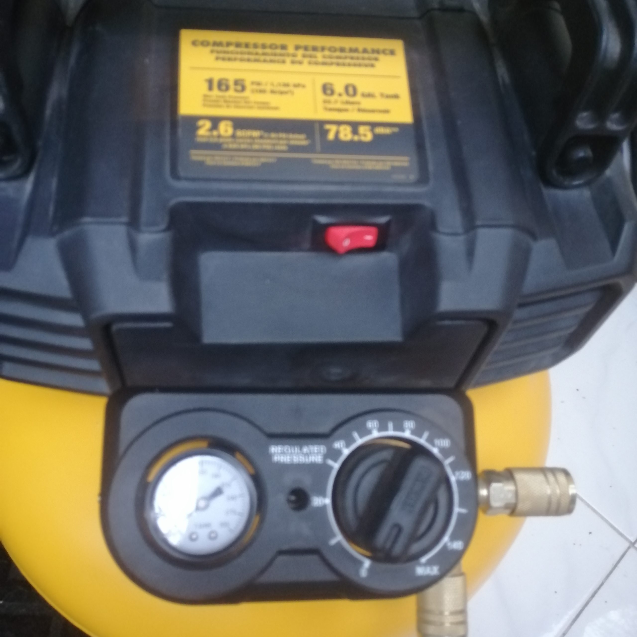 - Máximo 165 libras por pulgada cuadrada, tanque de 6 galones ó 22,7 litros y 2,6 pies cúbicos estándar por minuto entregados por una bomba a 90 libras por pulgada cuadrada.