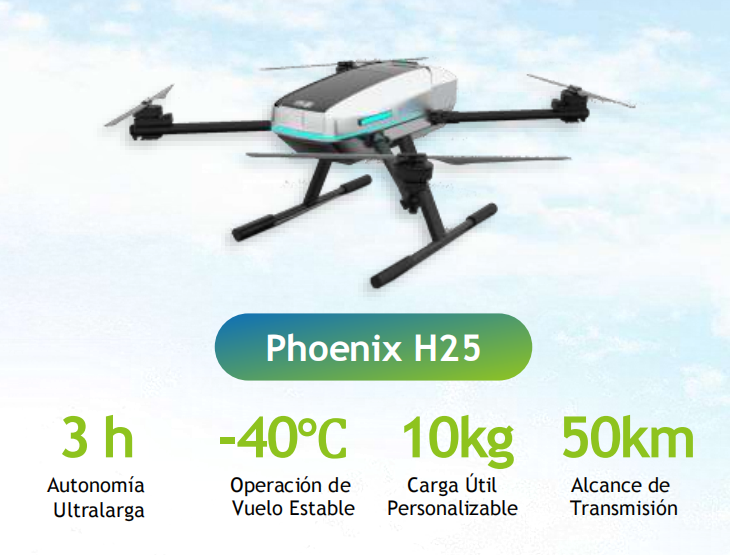 El dron Phoenix L25 cuenta con un sistema de potencia optimizado con fuertes capacidades de integración, compatible con diversos equipos y sensores de misión. Presenta interfaces de datos abiertas y protocolos de comunicación que facilitan la integración y el intercambio de datos. Es ampliamente utilizado en levantamientos topográficos, seguridad forestal, inspección de parques eólicos e inspección marítima.