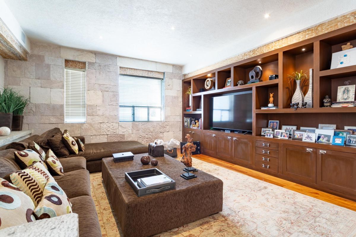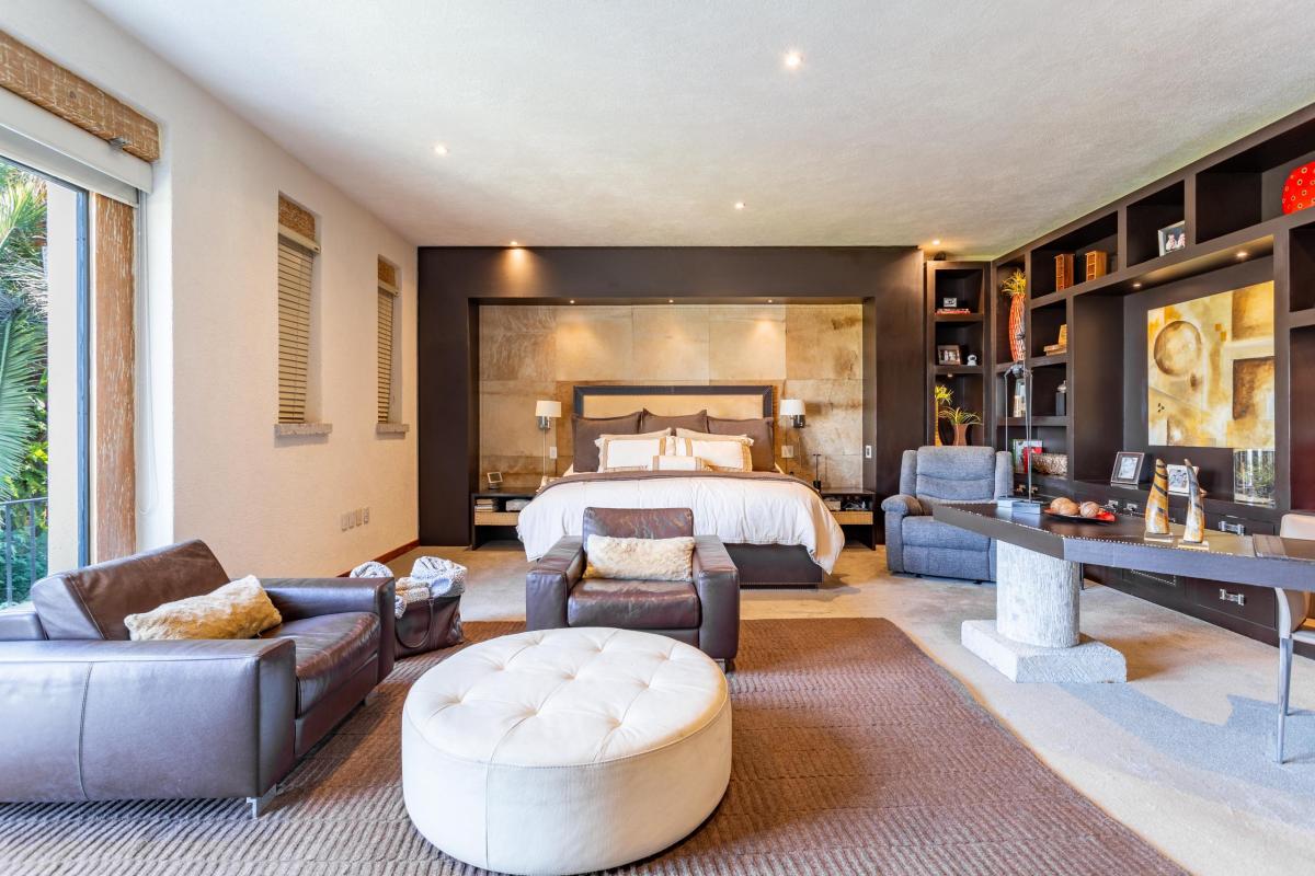 Las cuatro recámaras cuentan con aire acondicionado, baño y vestidor, y la recámara principal tiene vestidor, sala de televisión y un gran cuarto de blancos.