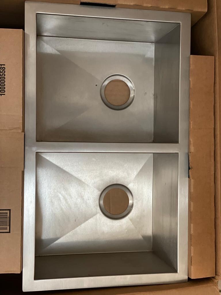 Fregadero marca Teka modelo EFRU 311810 nuevo con dos tarjas completo, incluye monomando, tabla para picar y rejillas