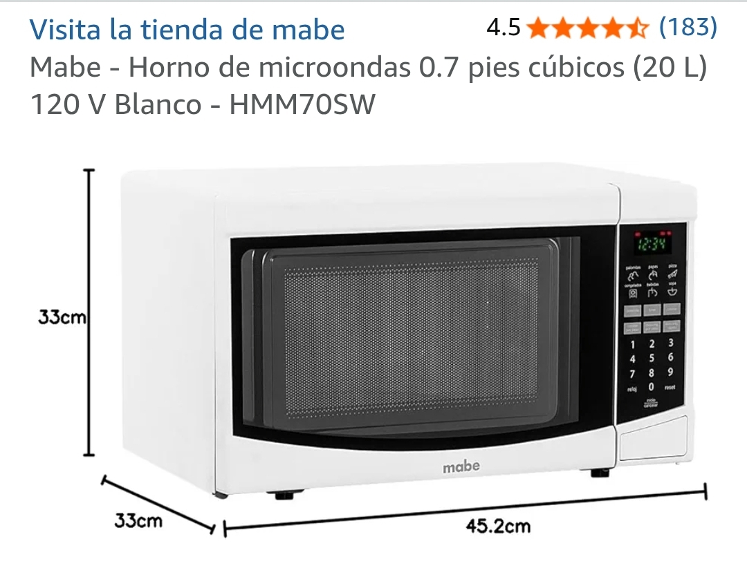 Mabe – Horno de microondas 0.7 pies cúbicos (20 L) 120 V Blanco – HMM70SW