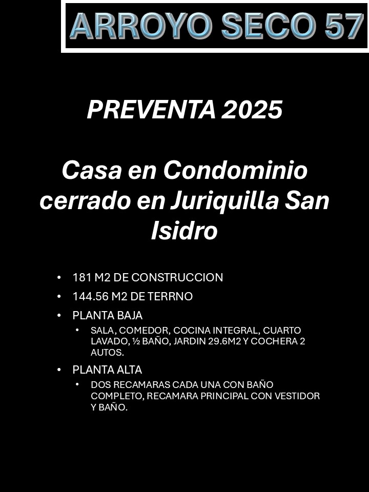 PREVENTA DE CASA EN CONDOMINIO EN SAN ISIDRO JURIQUILLA