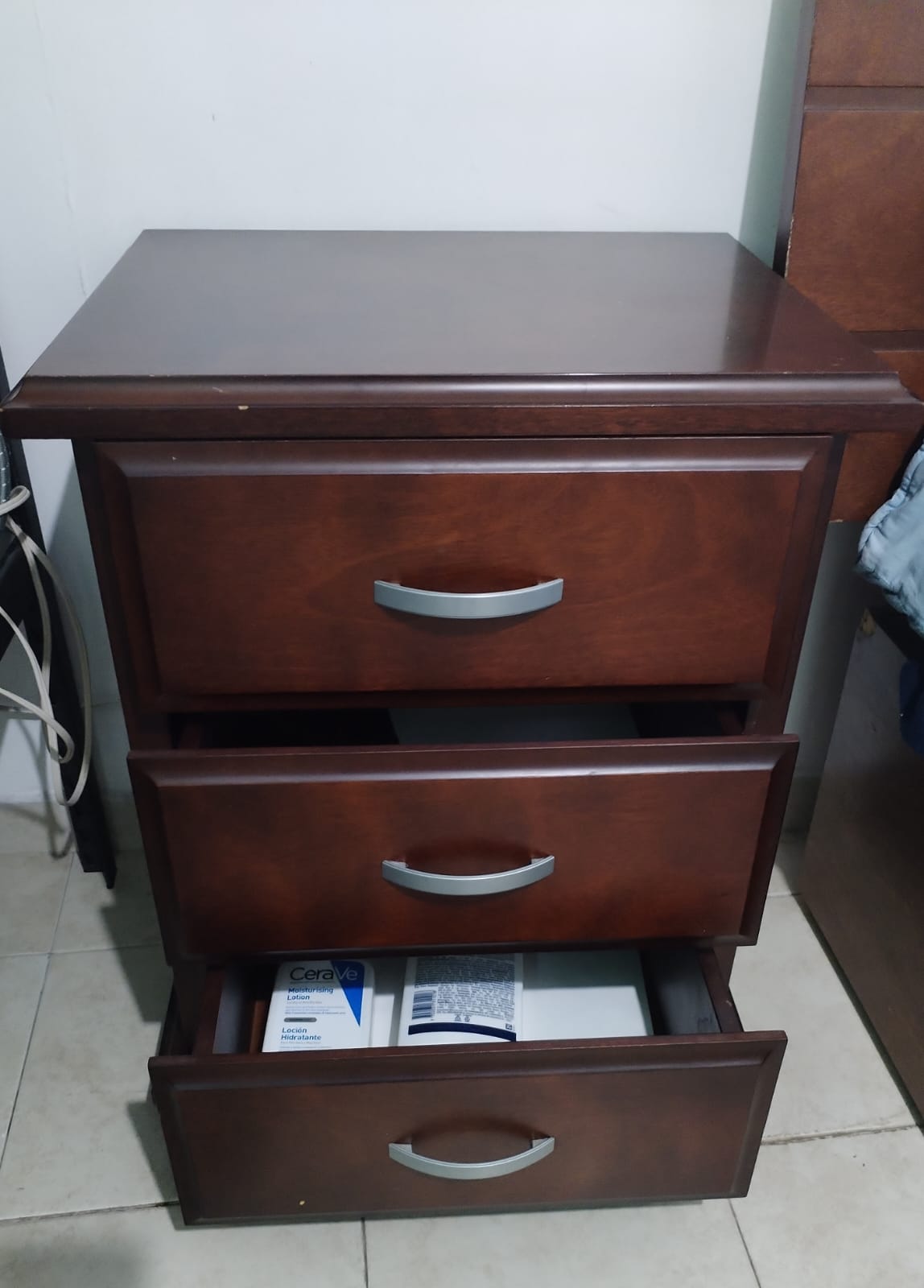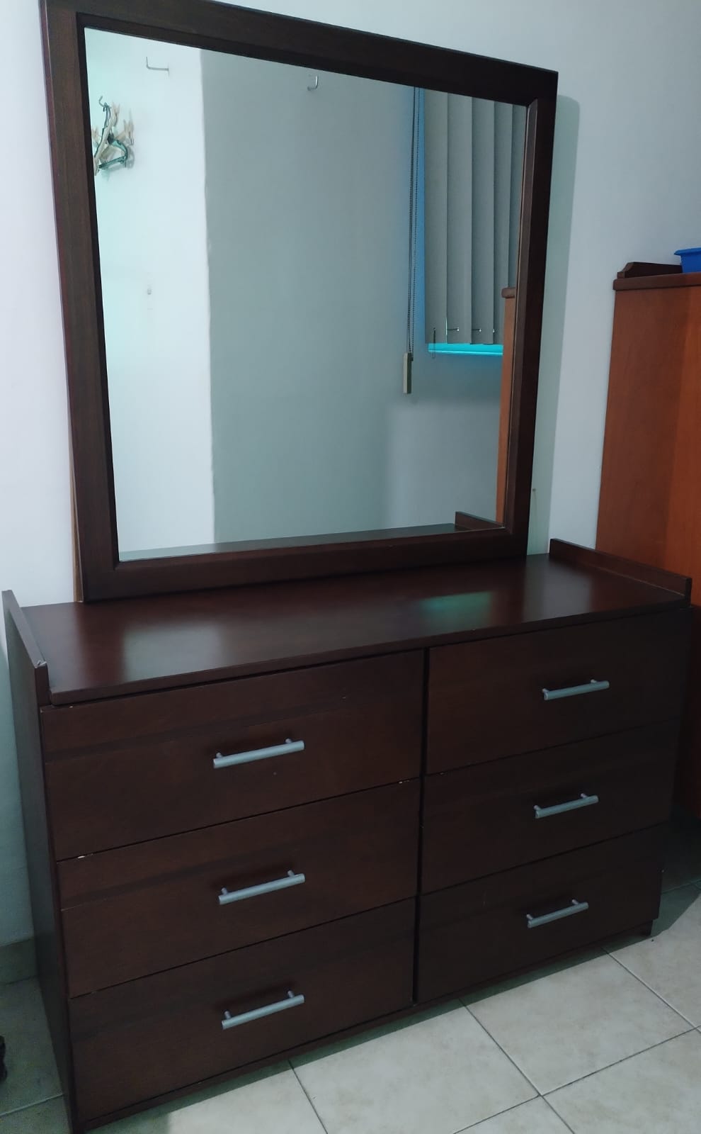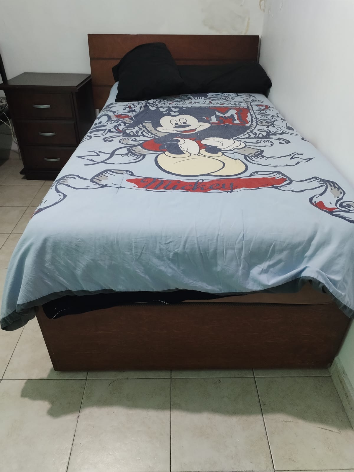Recámara individual: La base es de madera de pino con cajones y colchón américa usado. Cabecera, un buro de tres cajones grandes, y tocador con luna de madera de álamo de alta calidad, semi nuevo y muy bien cuidado.