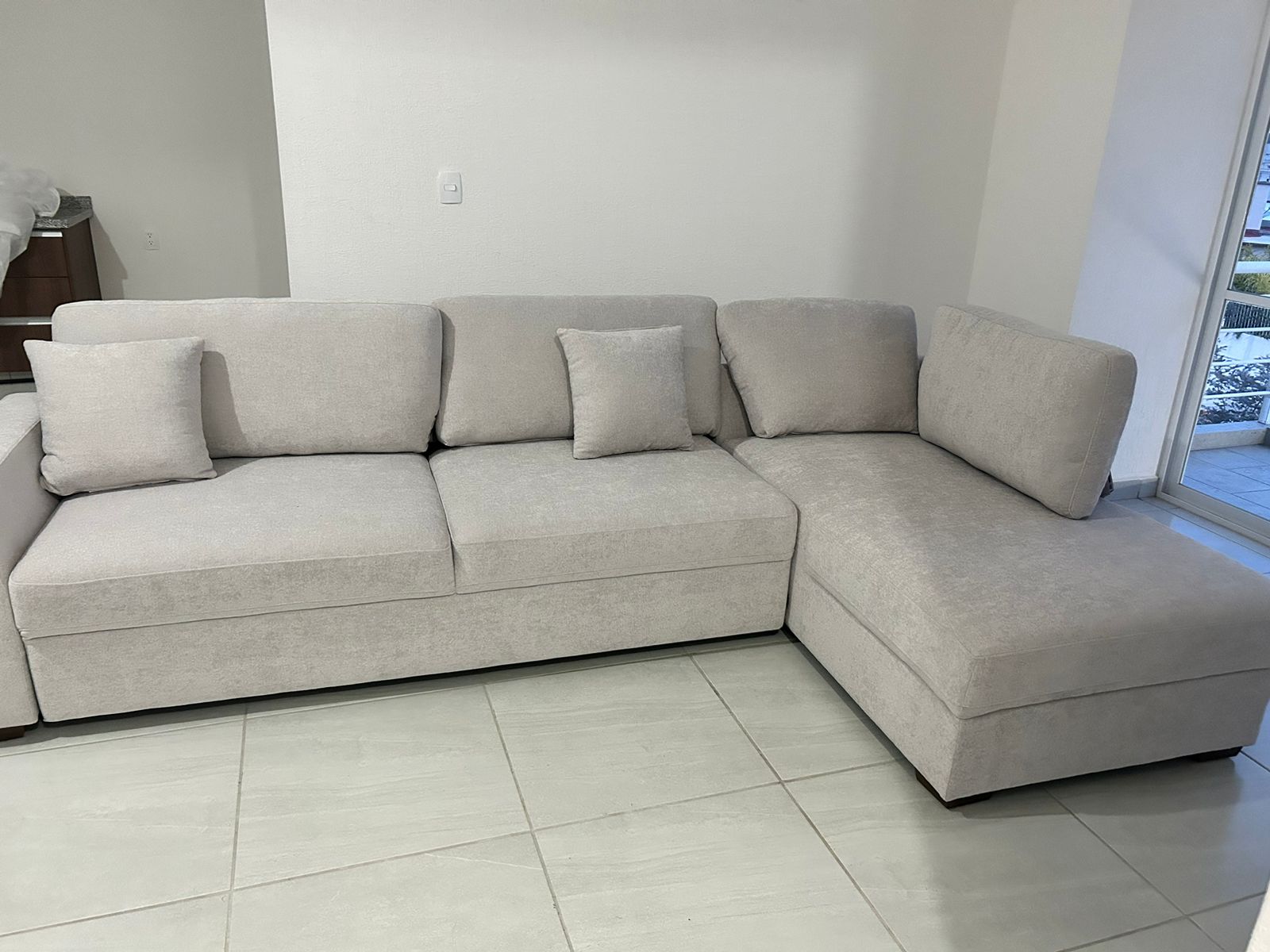 La sala es producto del costco. Alta calidad. Dos dos secciones en escuadra , una buena opción para una noche en familia
