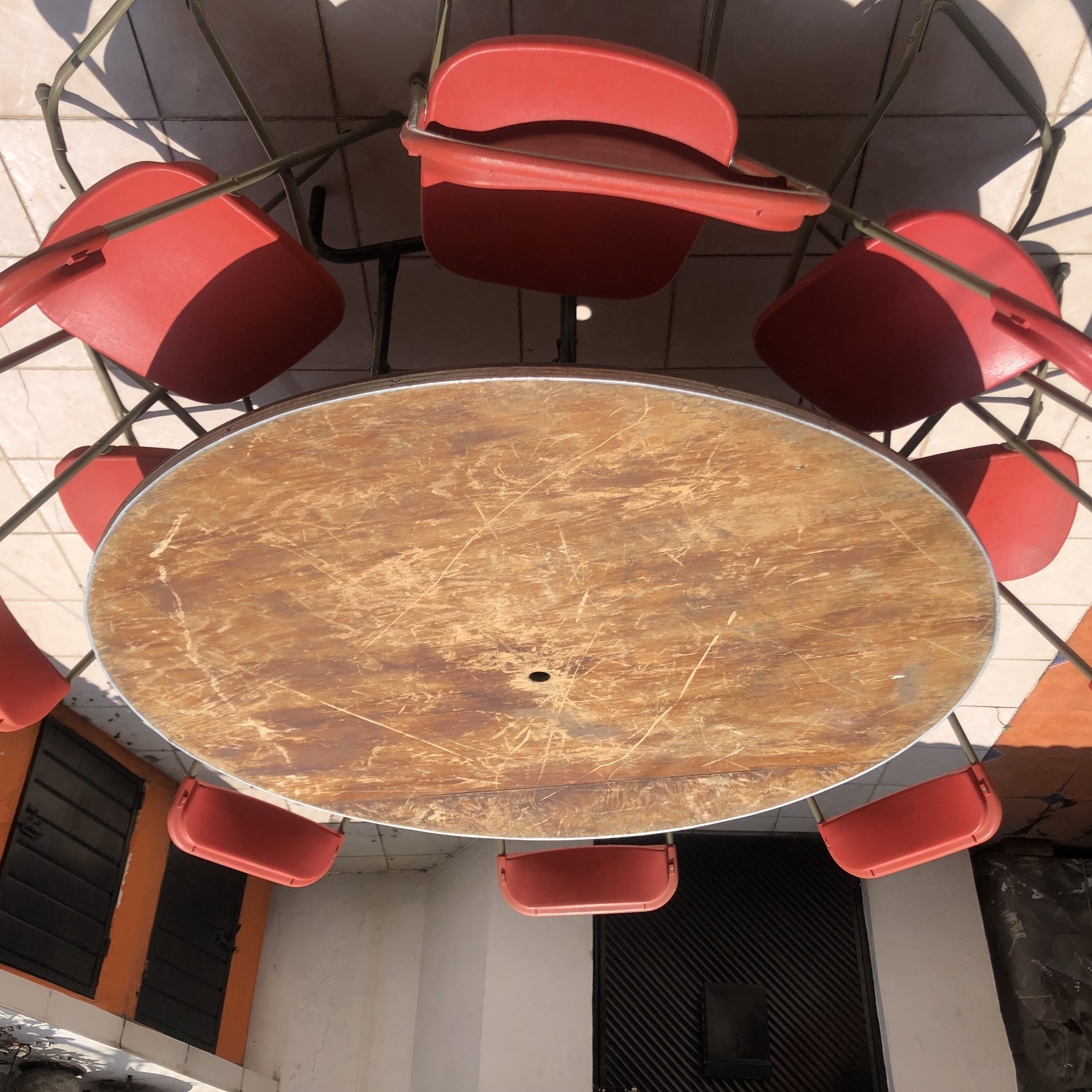 set de 10 mesas tablon redondas para eventos ( no incluye sillas )