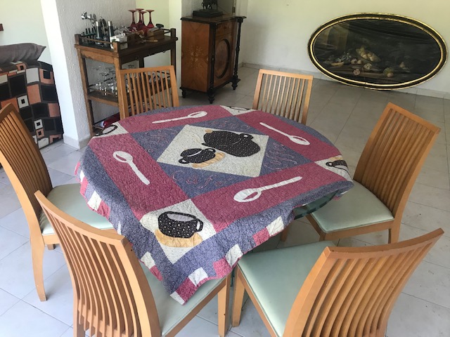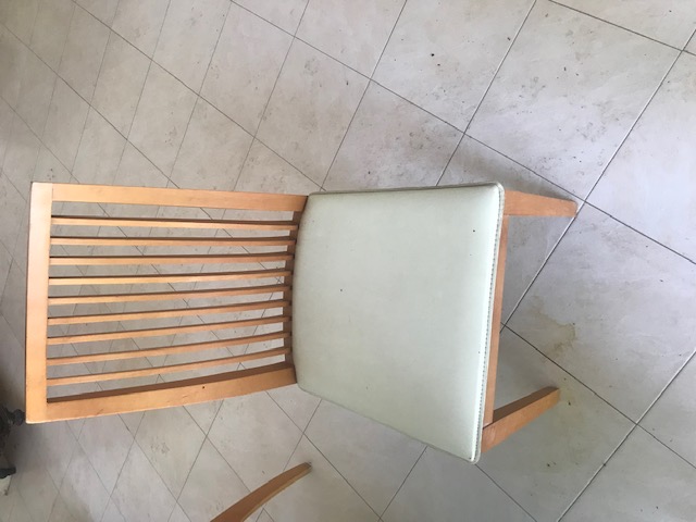 Elegantes sillas de comedor en madera con el asiento en tela con guata