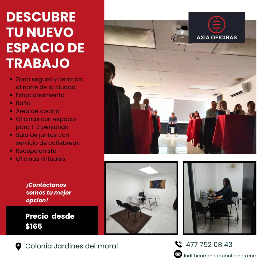Contáctanos al [4777520843] o escríbenos a judith.carranco@axiaoficinas.com para más información o disponibilidad.