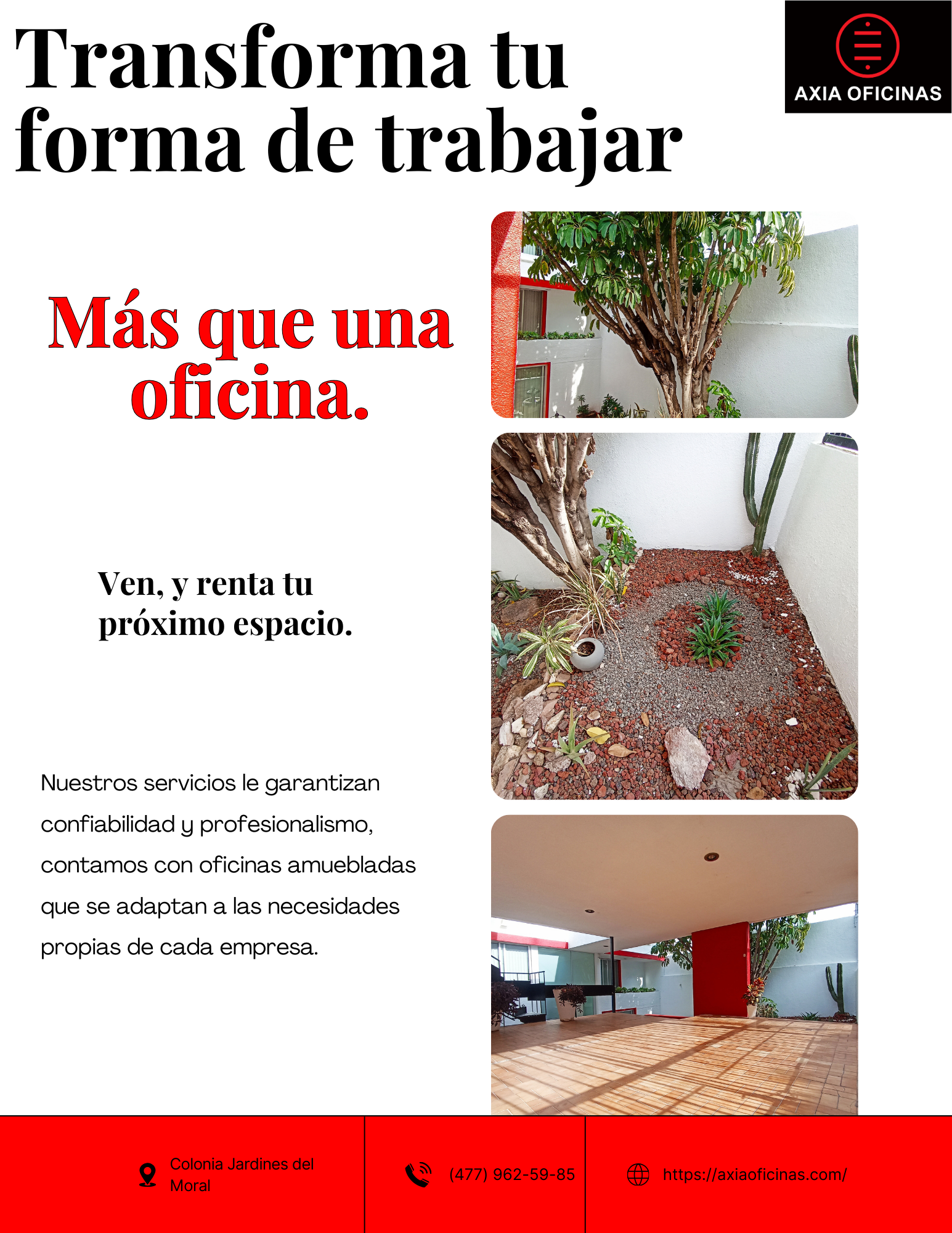 Es momento de dejar las distracciones de casa y darle a tu proyecto el cuartel general que necesita. Olvídate de pagar recibos por separado y de ser el recepcionista de tu propia empresa.