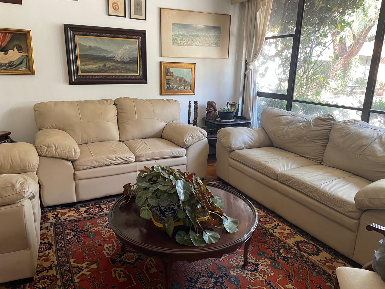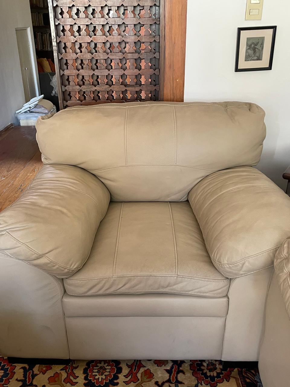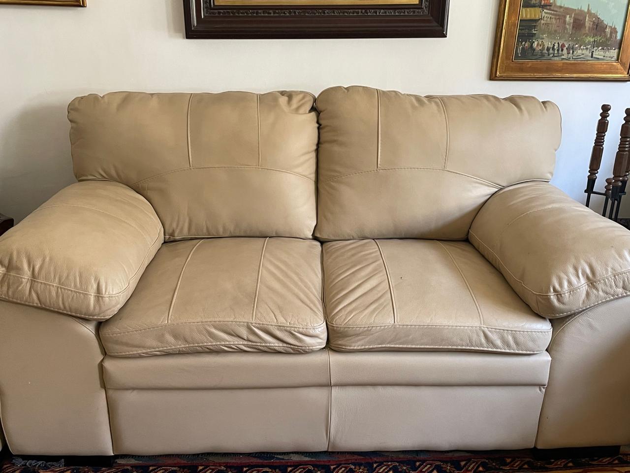 Vendo bonita sala completa en buen estado color Beige. Es de piel y son 3 piezas una sillón lago de tres plazas, un love seat y el individual. De preferencia necesito que vengan a recogerla.