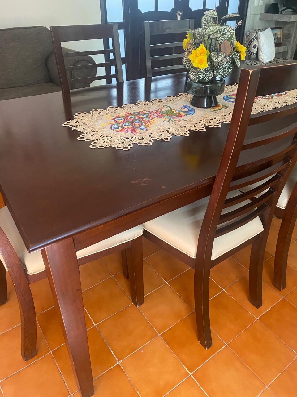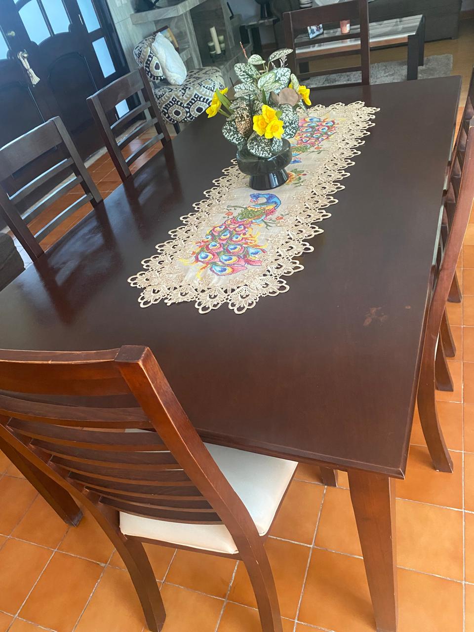 Comedor de madera de pino, seis sillas y una mesa, clásico con estilo artesanal distintivo, calidad a un precio más bajo, calidad y comodidad en el hogar.
