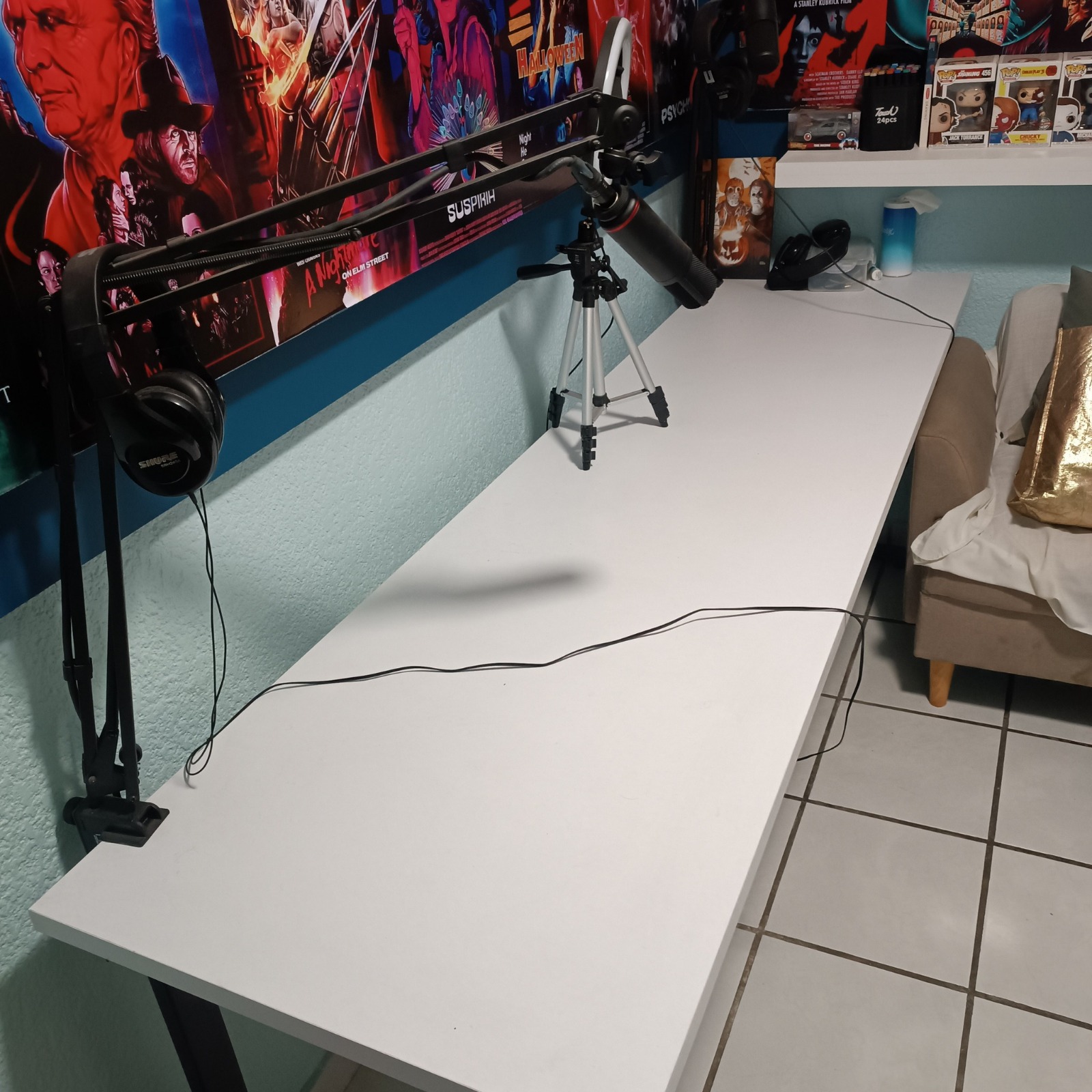 1 mesa de podcast de 1.80 x 0.80 metros x 0.75 metros de altura.
