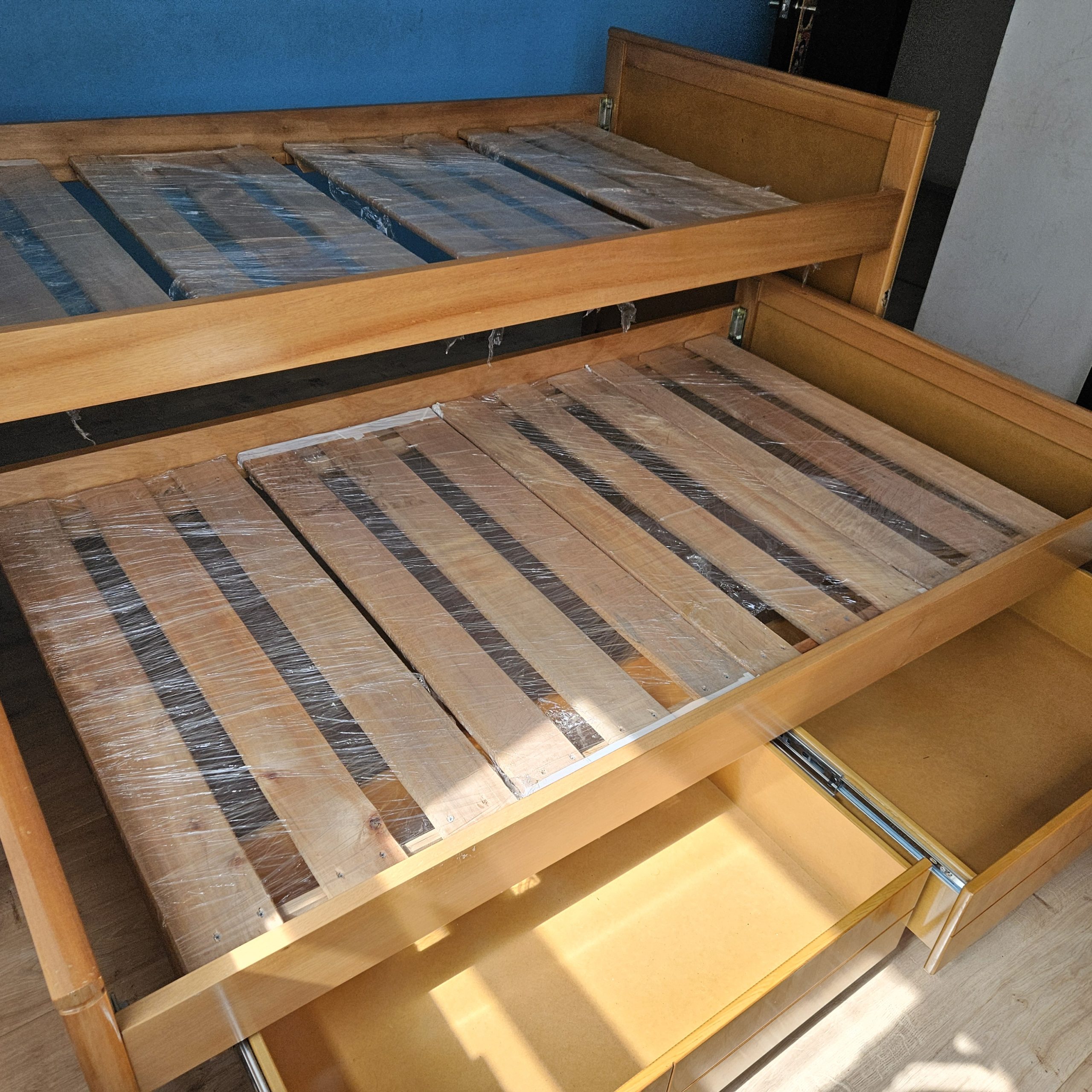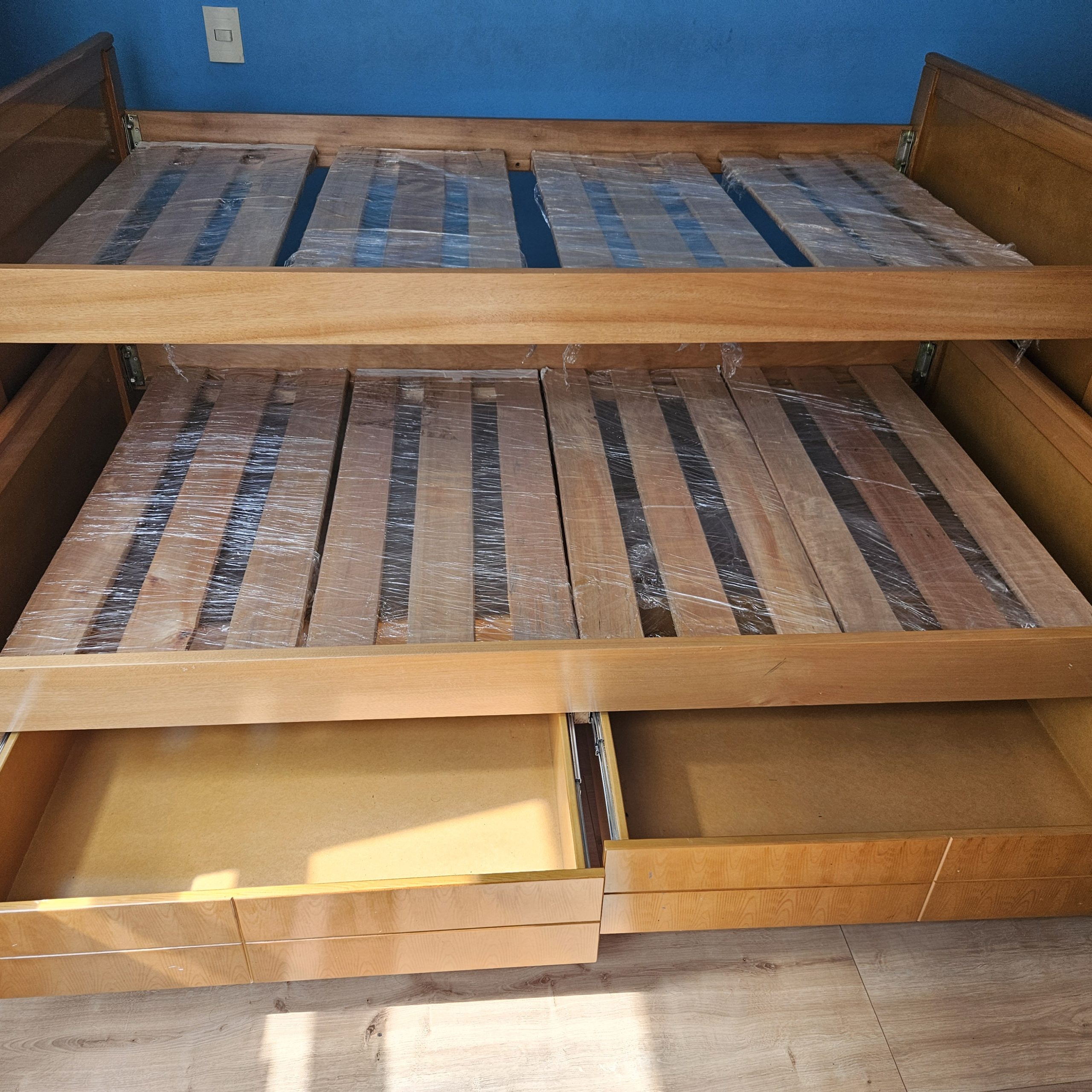 Juego de dos camas, una debajo de otra. Sencillas y con cajones.